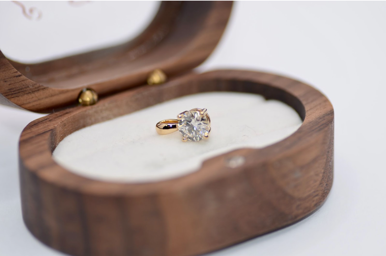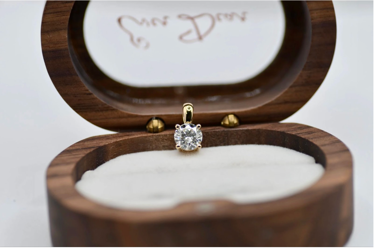 Enfin, le diamant est monté sur la pièce de joaillerie choisie. Dans le cas de Reza, il s’agissait d’un pendentif classique en or 18 carats, conçu pour être durable et confortable au quotidien.