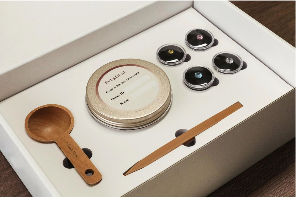 C’est un processus presque poétique. Tout comme le deuil exerce une pression sur nos vies et nous transforme, la pression dans la machine transforme de simples cendres en quelque chose d’inaltérable et de lumineux.